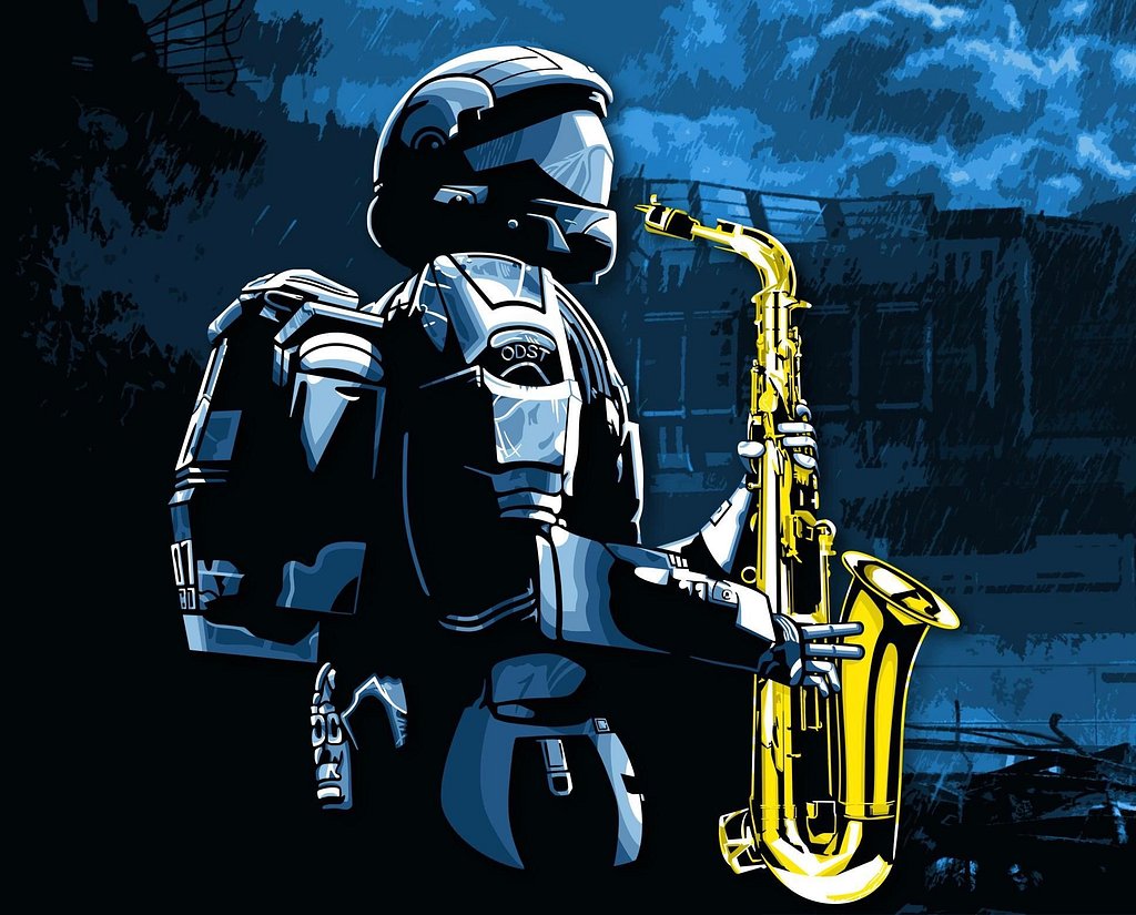 I’m that ODST on the saxophone and I like action figure photography, martial arts, and motocross. My favorite game is Halo 3 ODST. I miss New Mombasa.